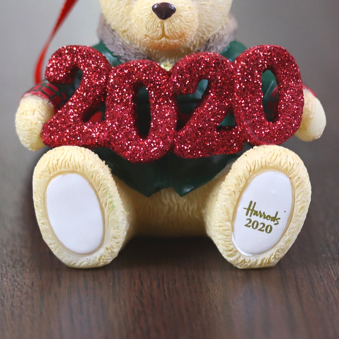 2020年限定のイヤーベアは、Harrodsロゴ入りでHarrodsカラーのグリーンジャケットを羽織った"ニコラス"です。