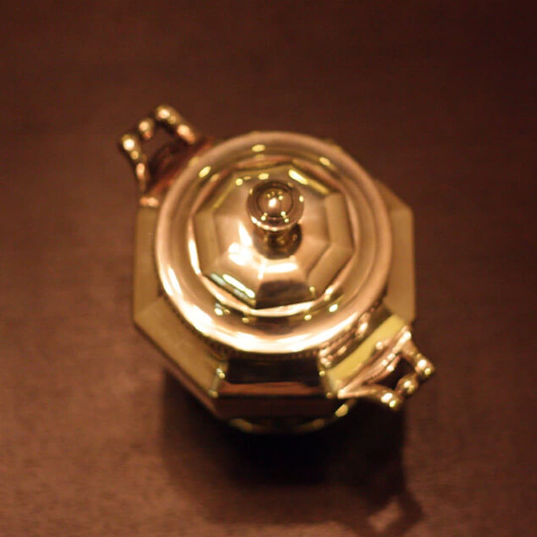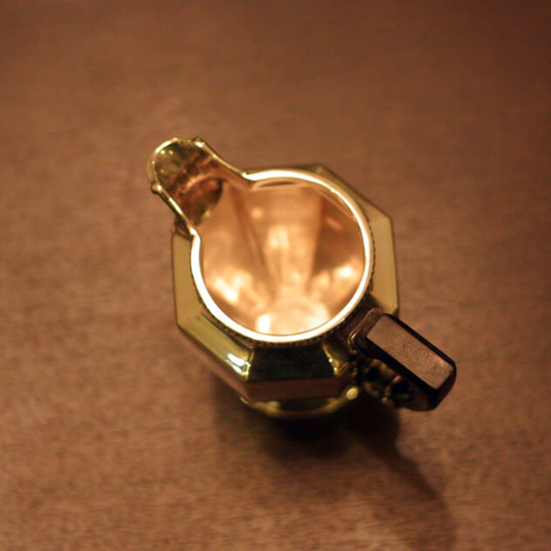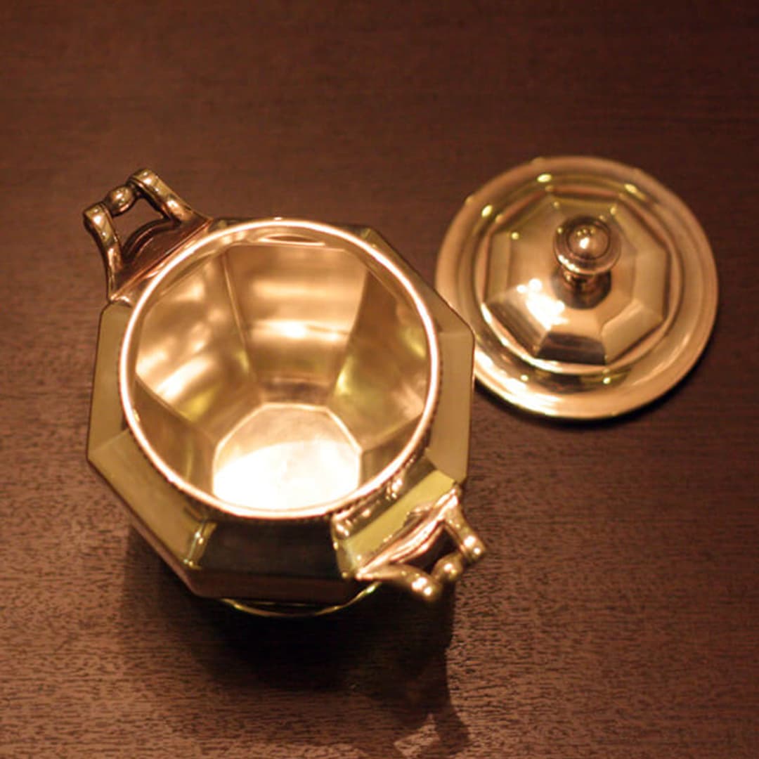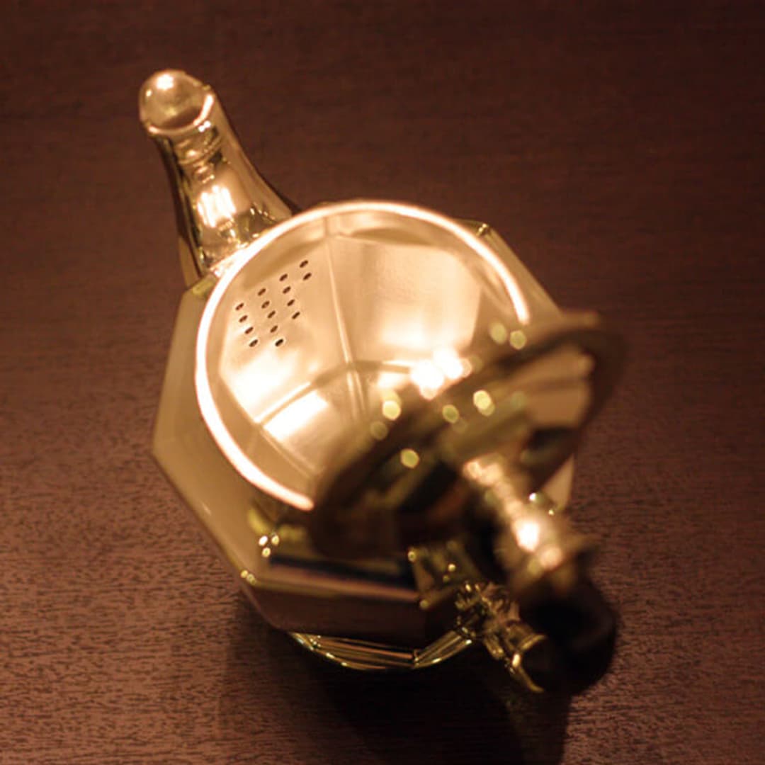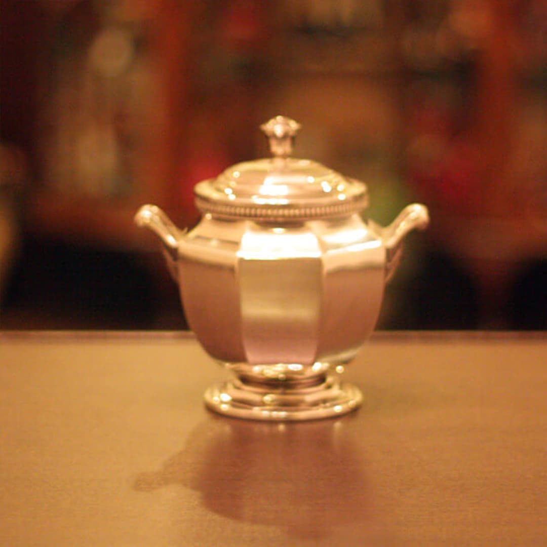 家庭用2人用(ティーカップ4杯)の2点ティーセットです。イギリスで改装(再メッキ)されたものです。