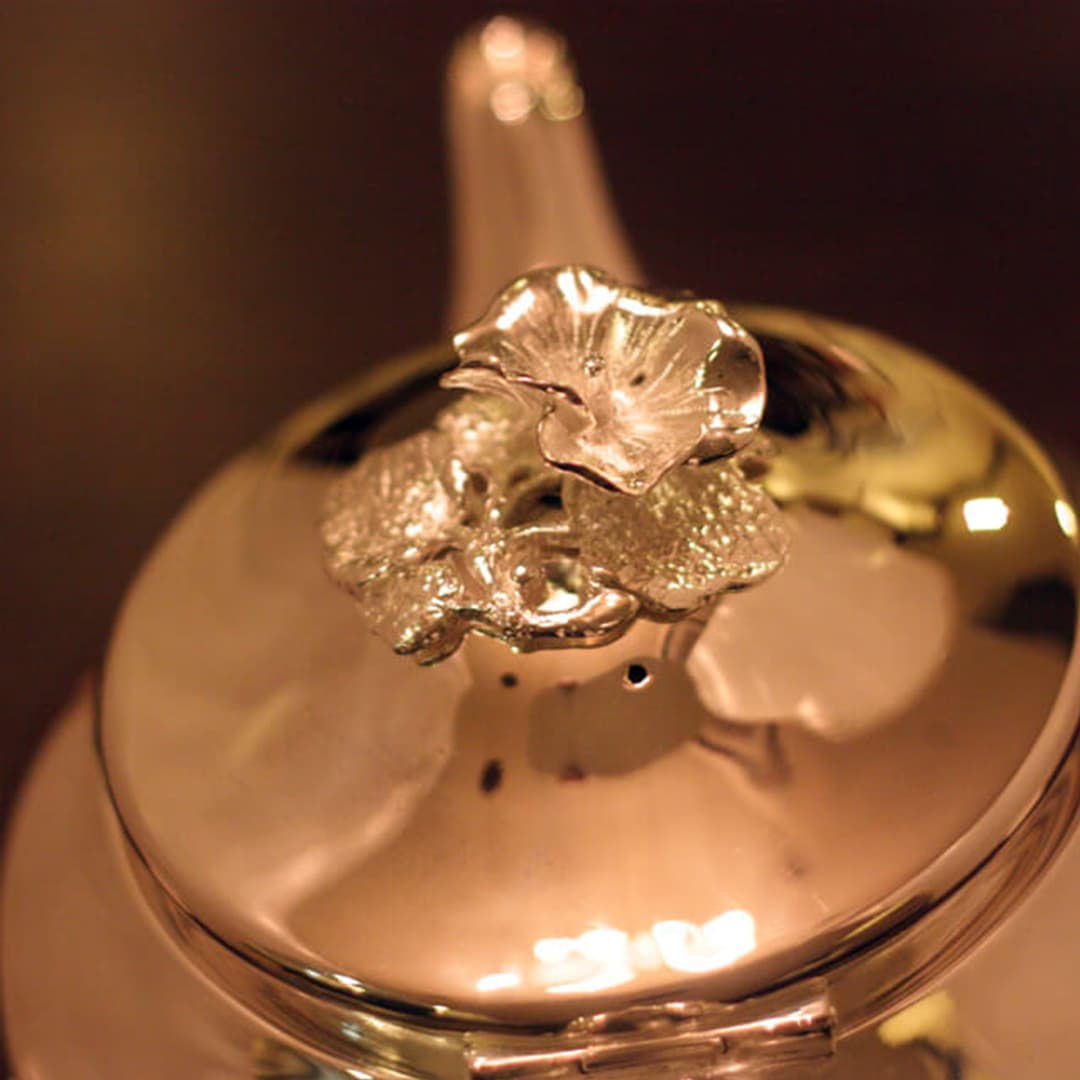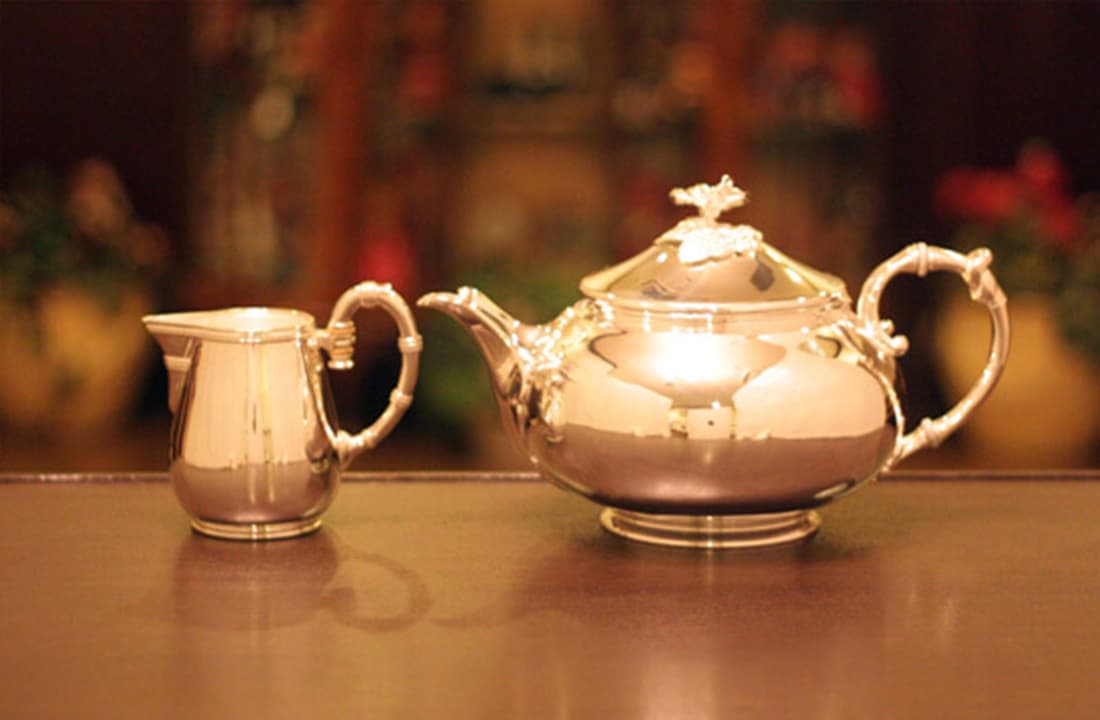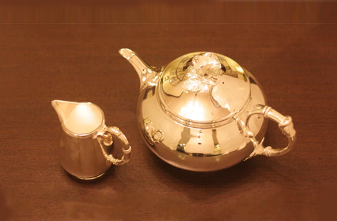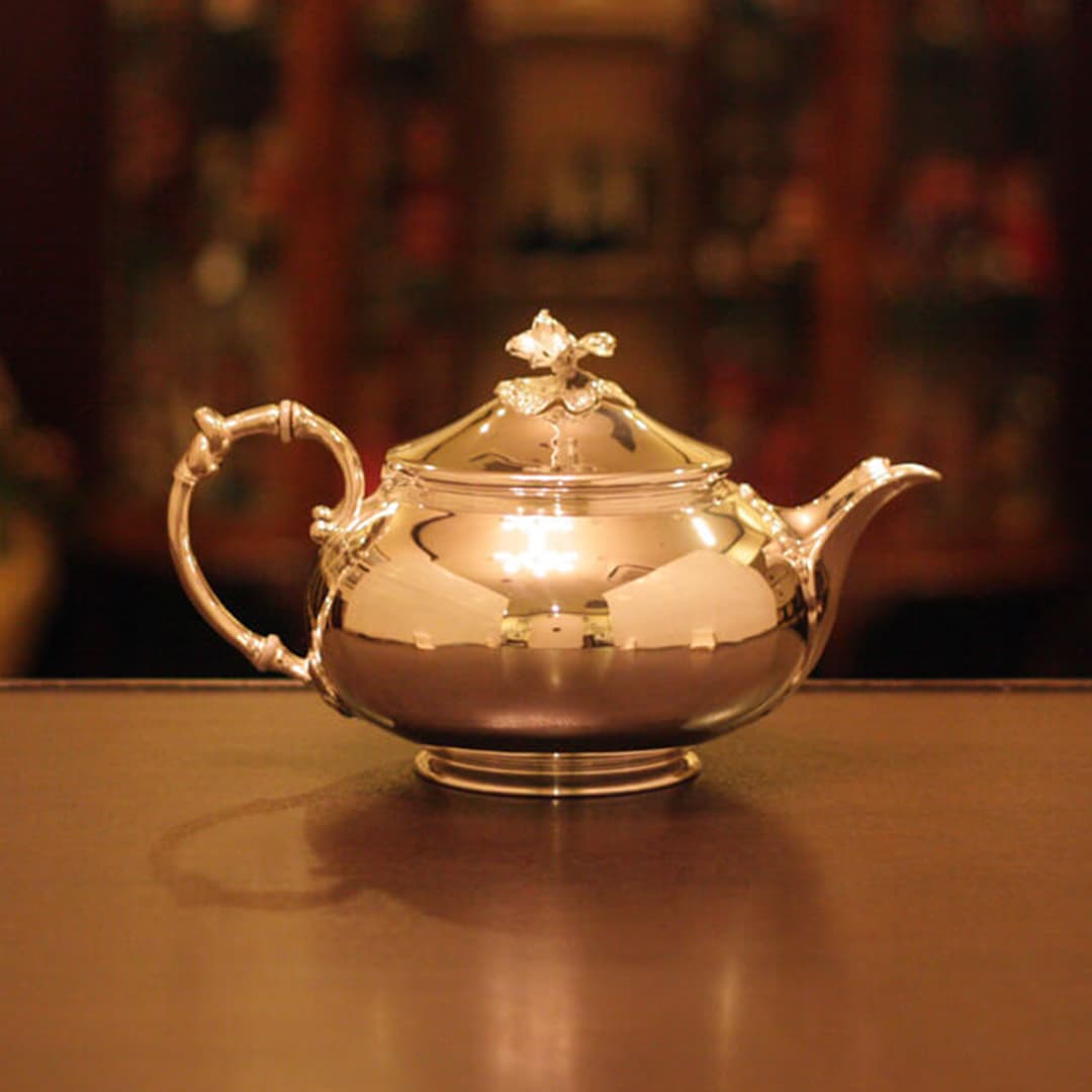 家庭用2人用(ティーカップ4杯)の3点ティーセットです。日本で改装(再メッキ)されたものです。