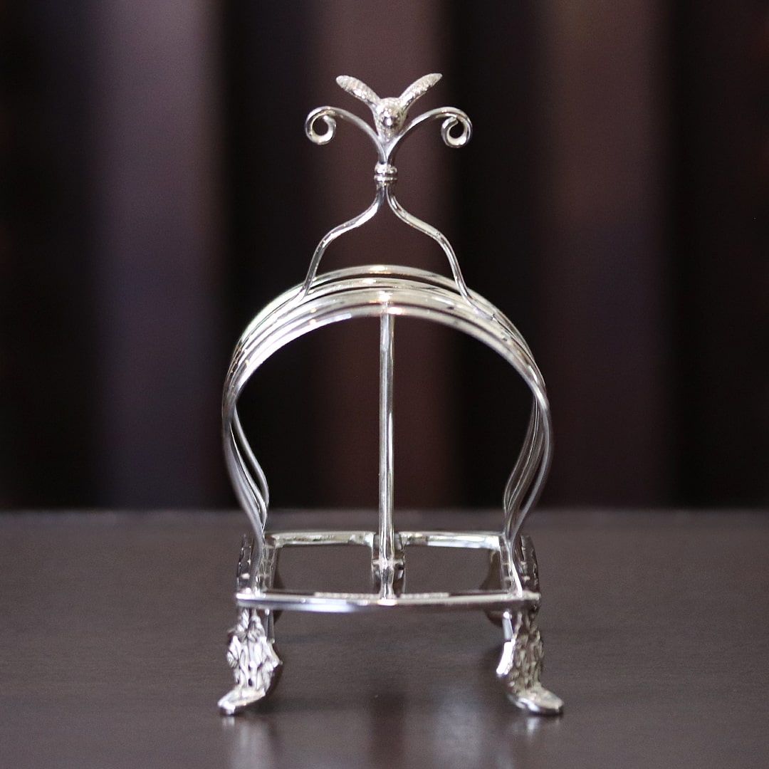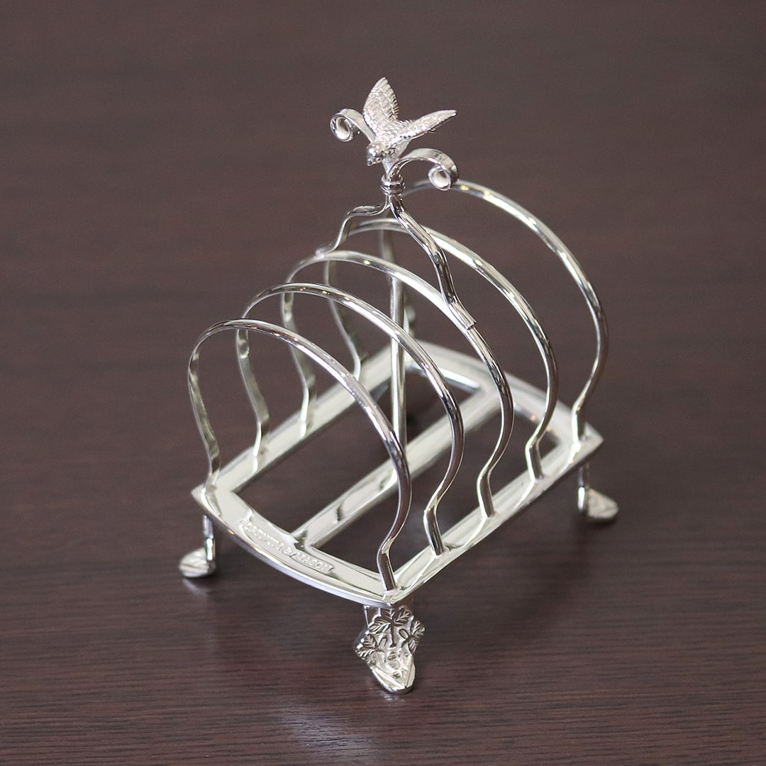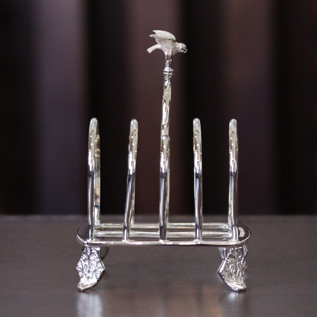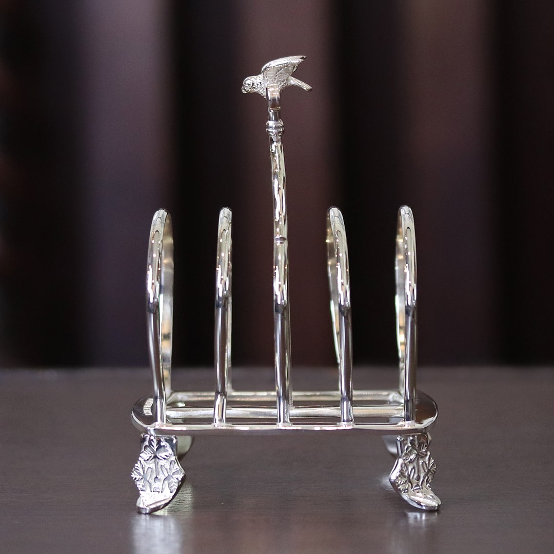 ルイ・フィリップのデザインが手作業で彫刻された、シルバープレートのトーストラックです。