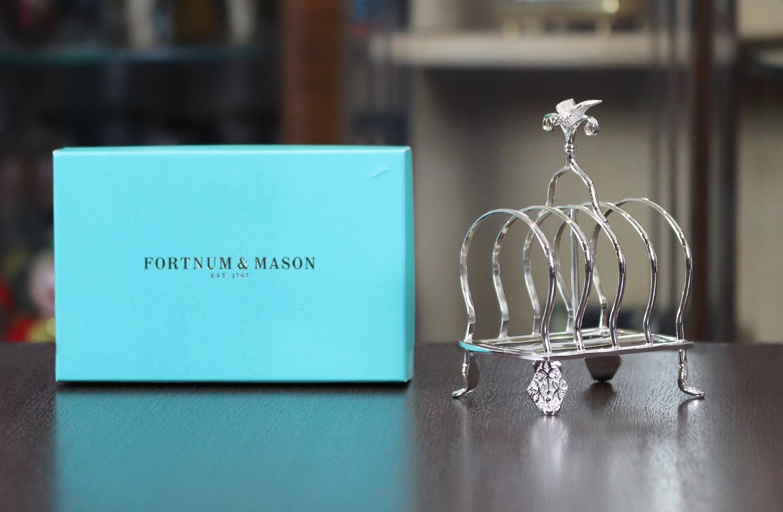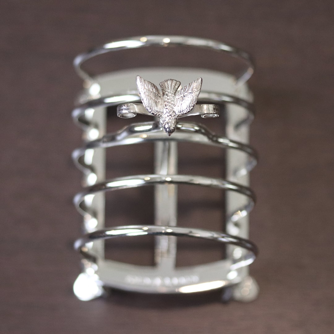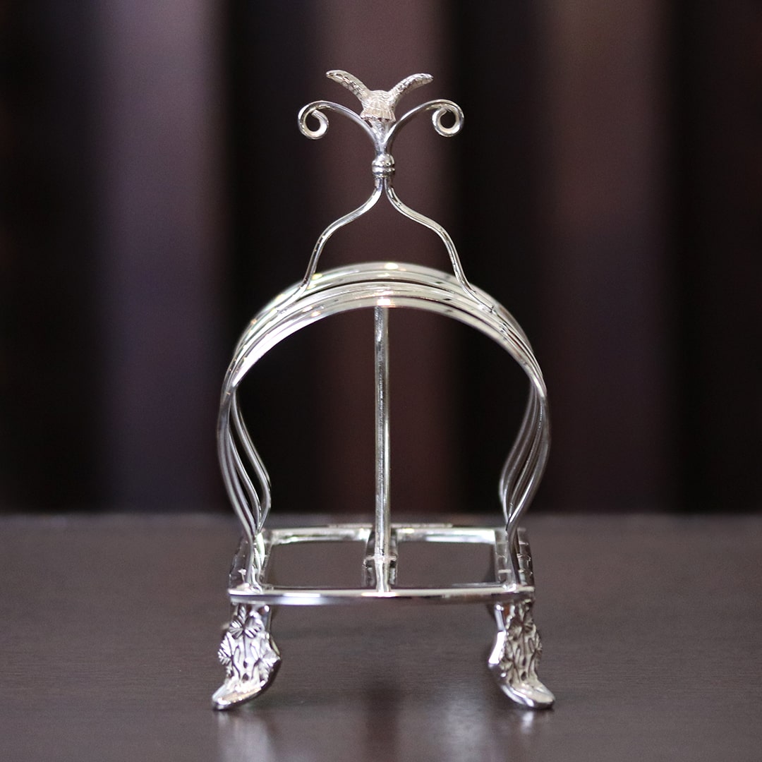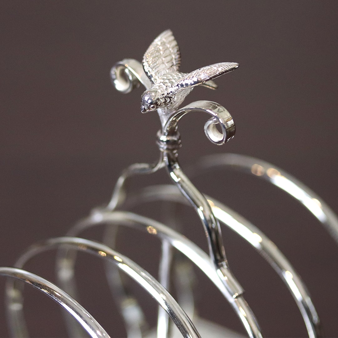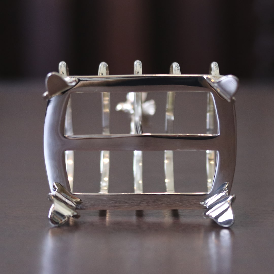 ルイ・フィリップのデザインが手作業で彫刻された、シルバープレートのトーストラックです。