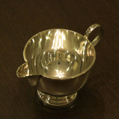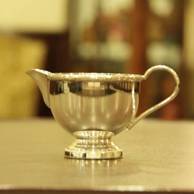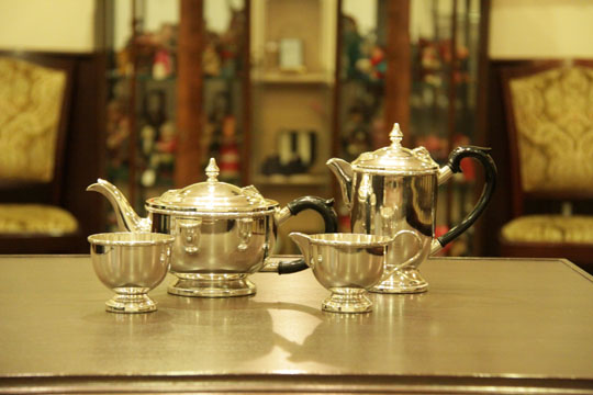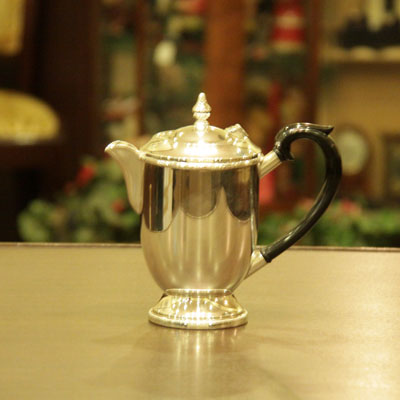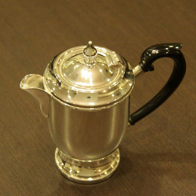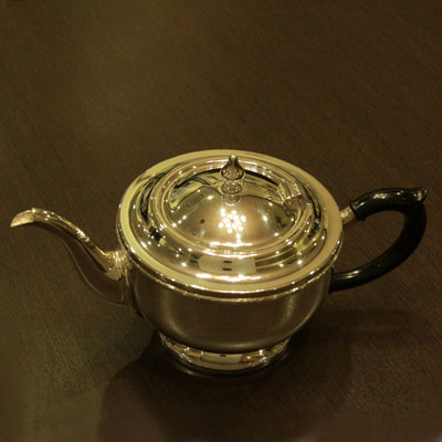 家庭用仕様で2人用(ティーカップ4杯)の4点ティーセットです。イギリスで改装(再メッキ)されたものです。