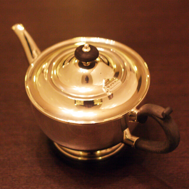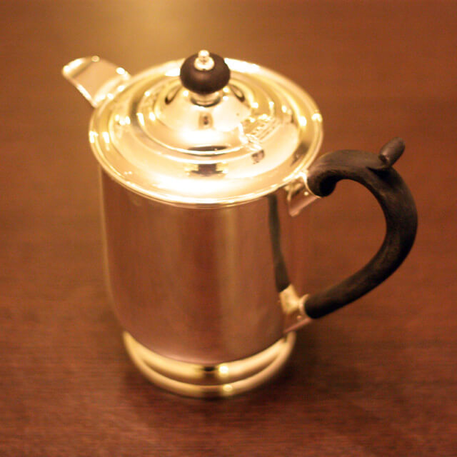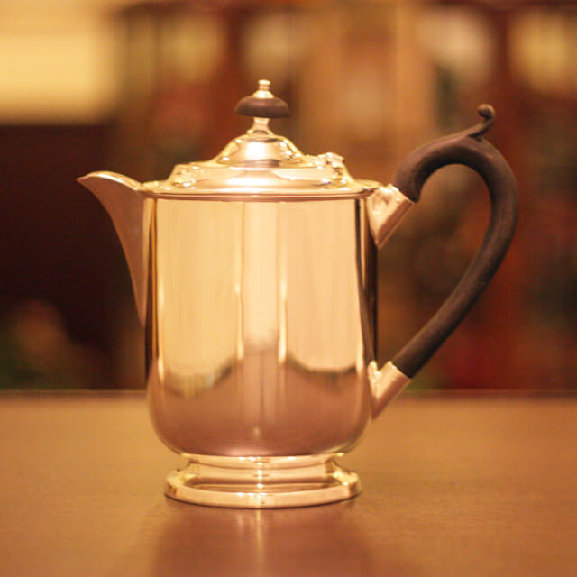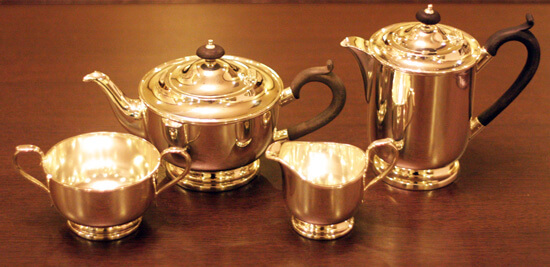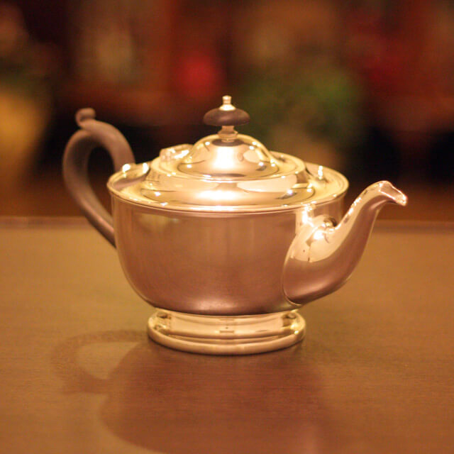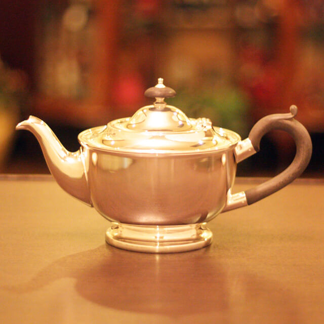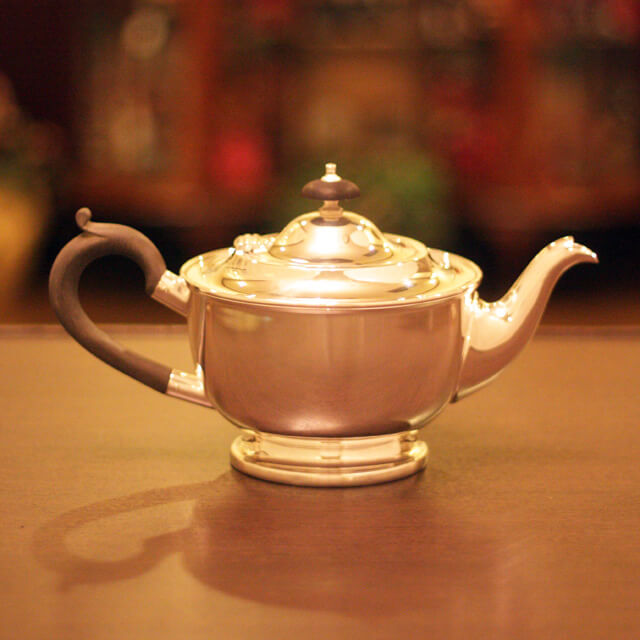 家庭用仕様で2~3人用(ティーカップ5~6杯)の4点ティーセットです。日本で改装(再メッキ)されたものです。