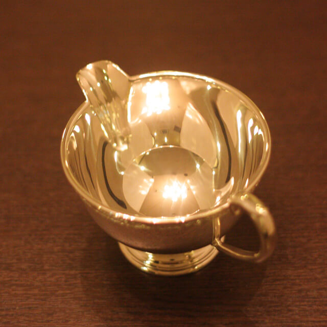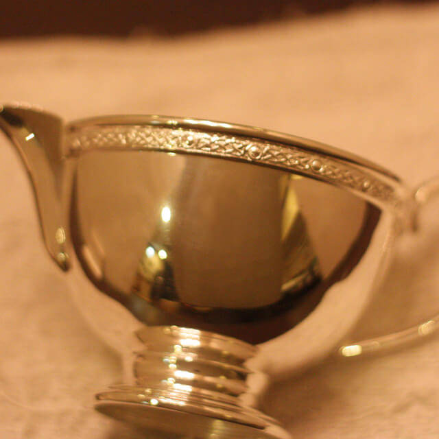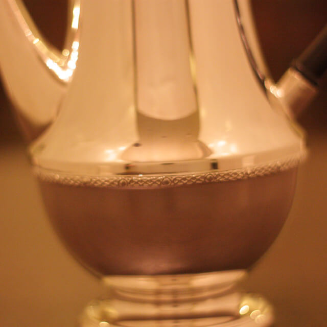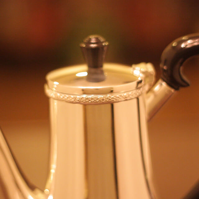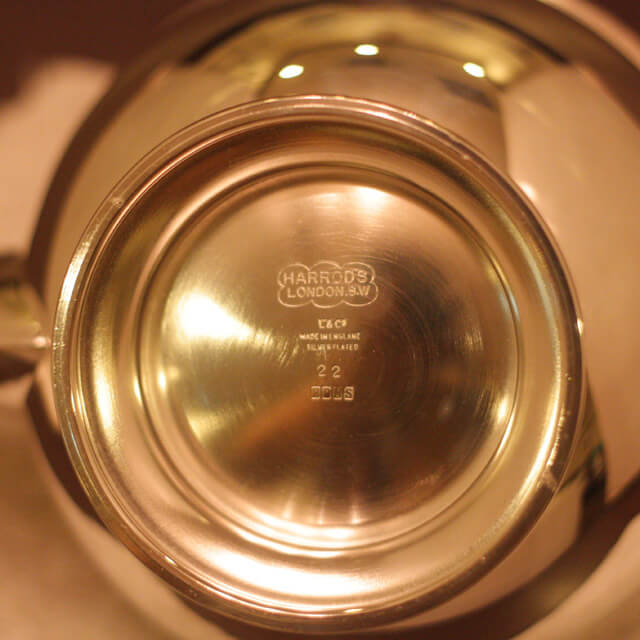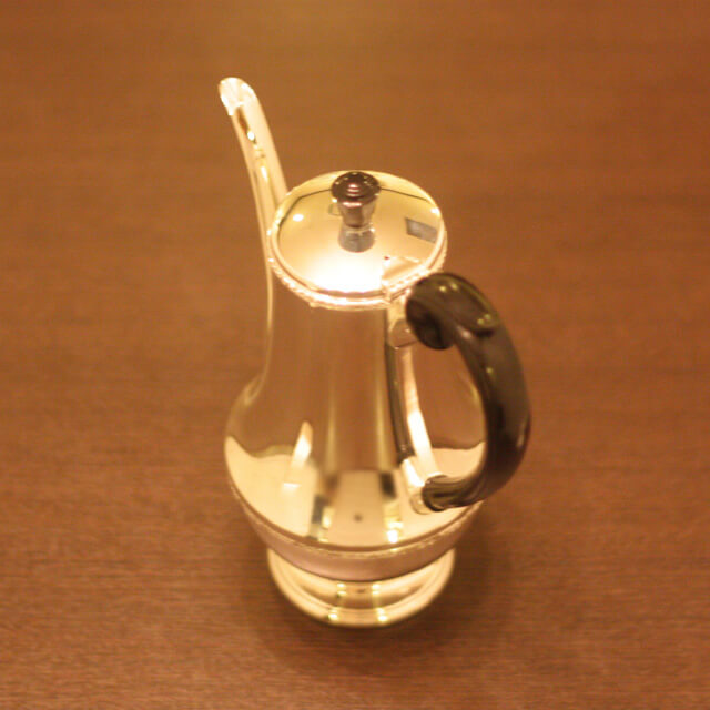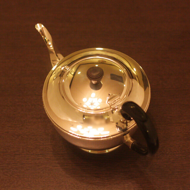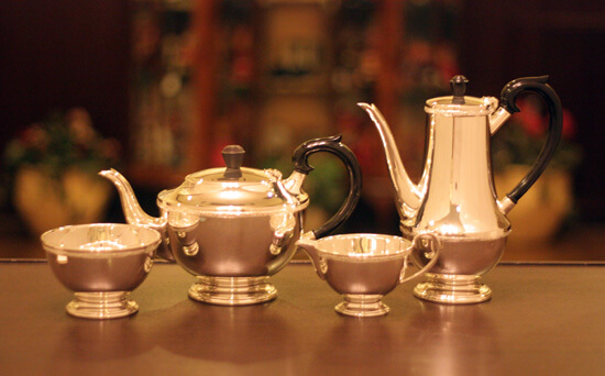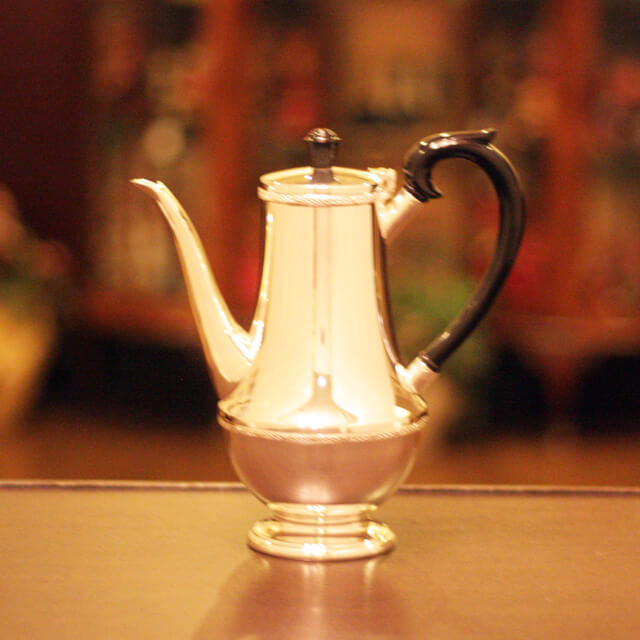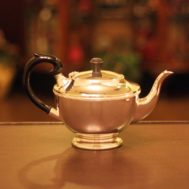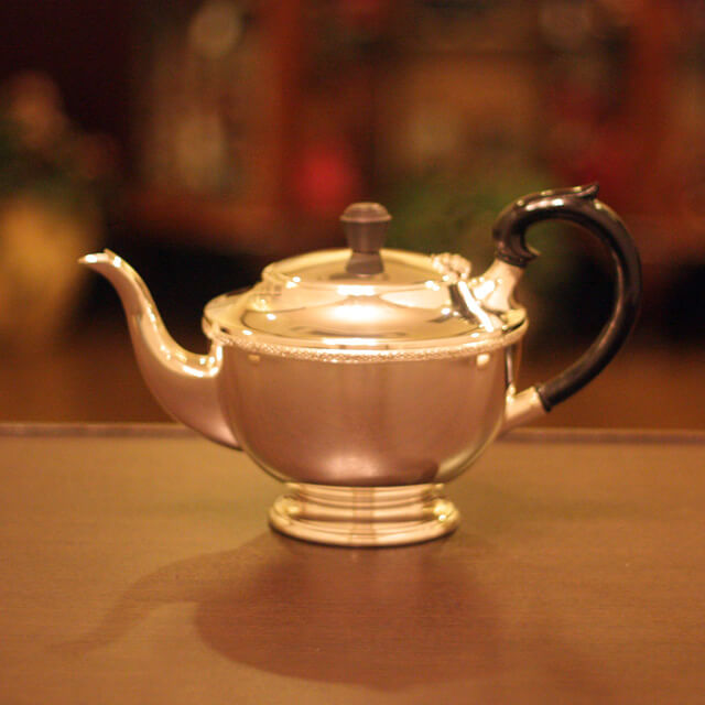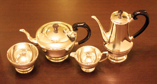 家庭用仕様で2人用(ティーカップ4杯)の4点ティーセットです。日本で改装(再メッキ)されたものです。