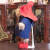 Harrodsのロゴマークの入ったダッフルコートを着ています。