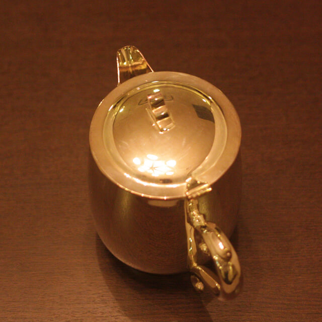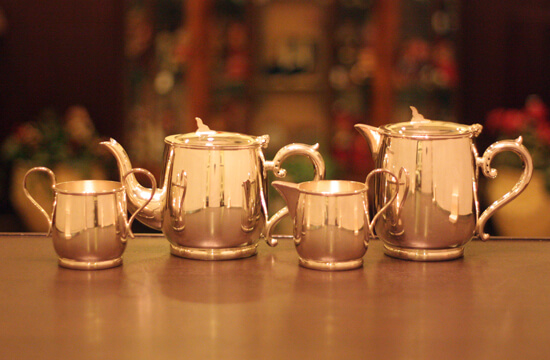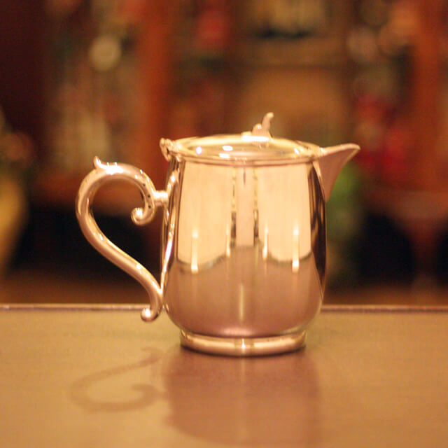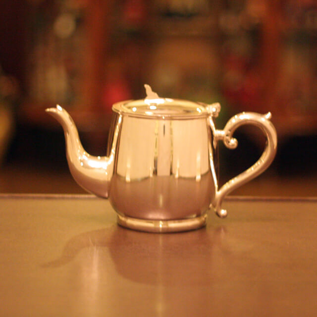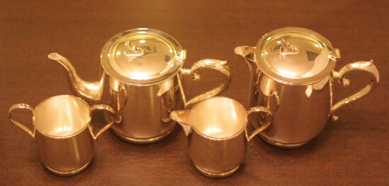 ホテル用2人用(ティーカップ4杯)の4点ティーセットです。日本で改装(再メッキ)されたものです。