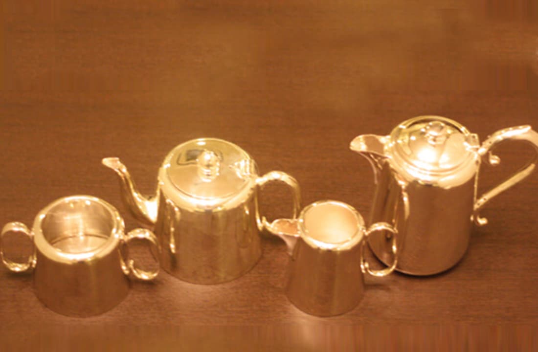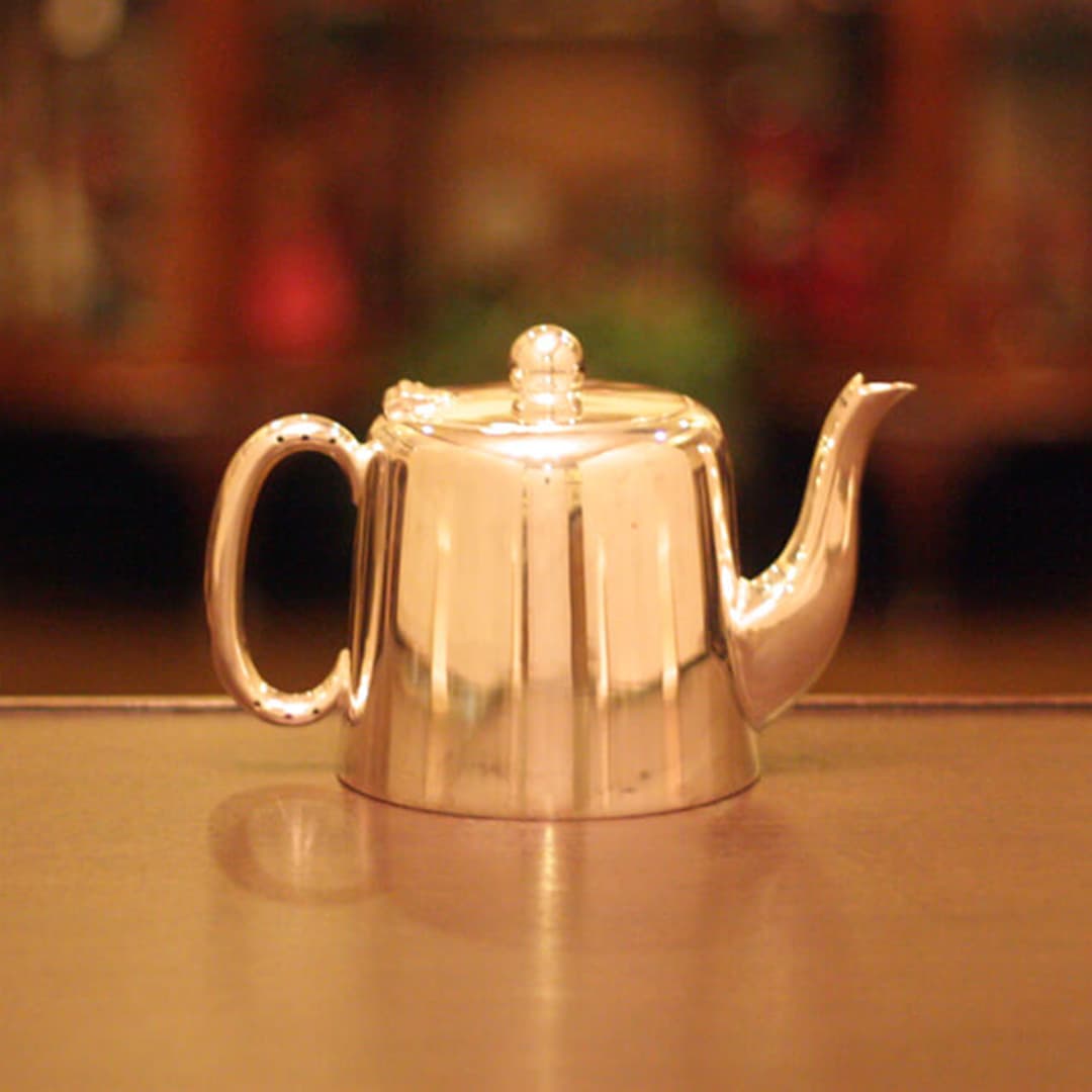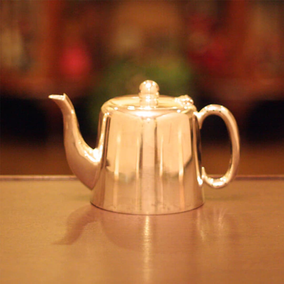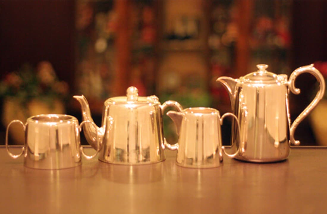 ホテル用1人用(ティーカップ3杯)の4点ティーセットです。日本で改装(再メッキ)されたものです。
