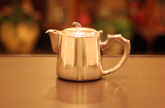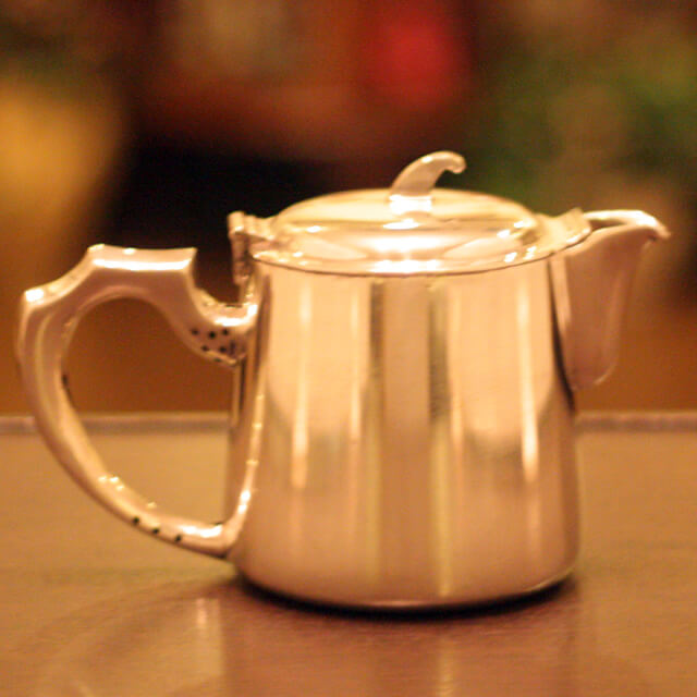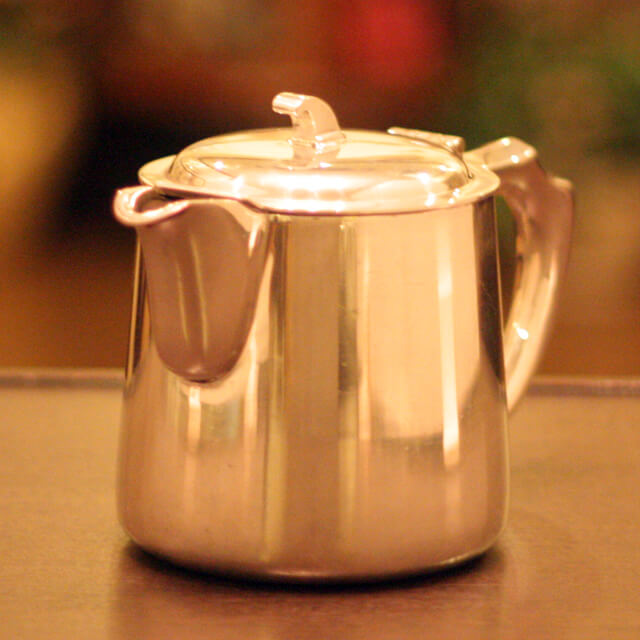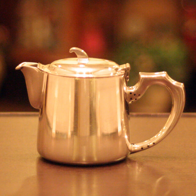 ホテル用1人用(ティーカップ2杯)のティーポットです。イギリスで改装(再メッキ)されたものです。