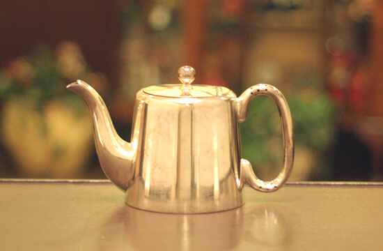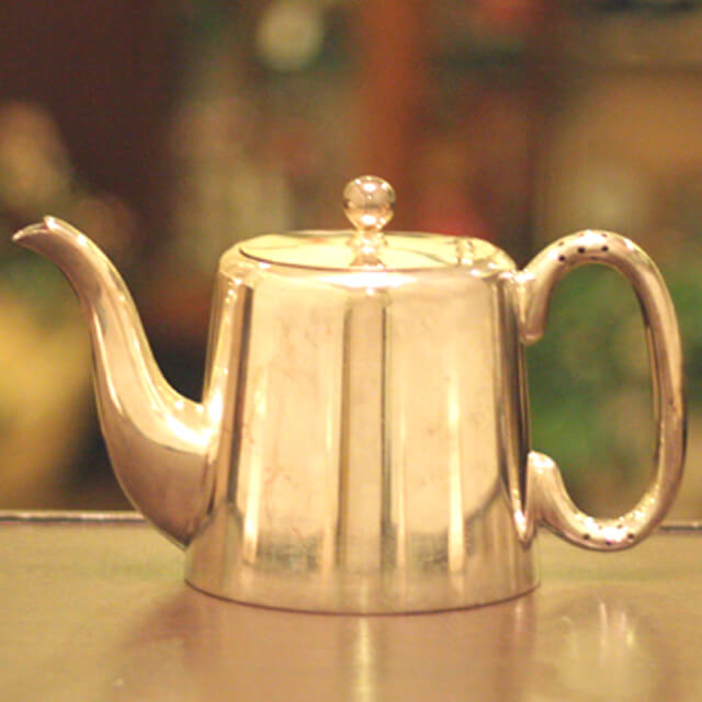 ホテル用2人用(ティーカップ4杯)のティーポットです。日本で改装(再メッキ)されたものです。