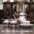 家庭用仕様で2人用(ティーカップ4杯分)の3点ティーセットです。マッピン&ウェッブスタイルのデザインです。