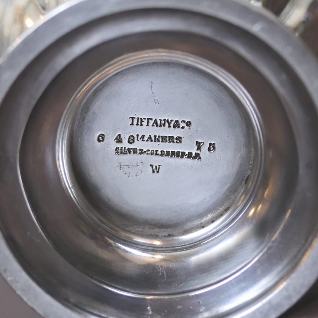 そのため、現在市場に出回っているTiffanyのシルバーティーポット等は側面にイニシャルが入っている商品が非常に多く、贈り先のイニシャルが入っていないもの・年代物は殆ど市場に出ていません。