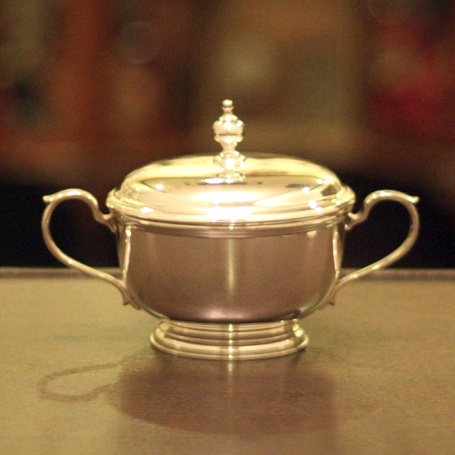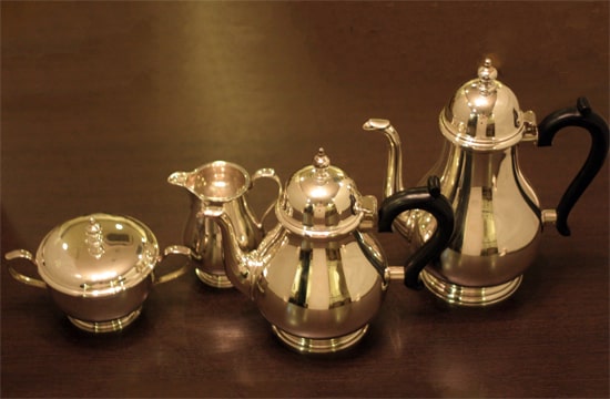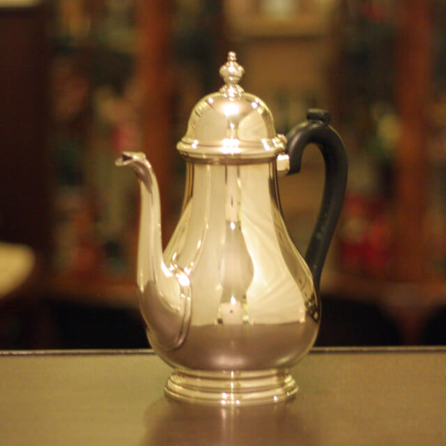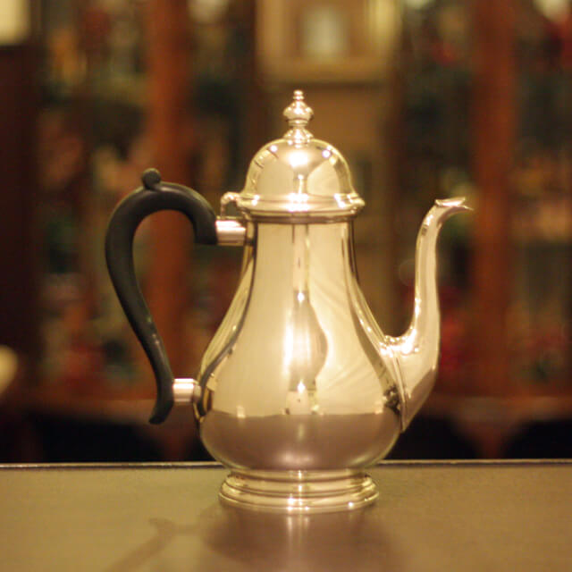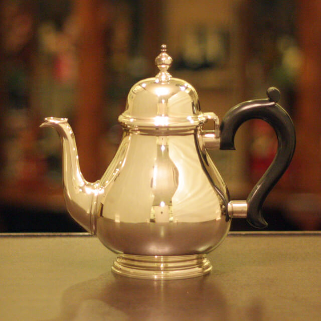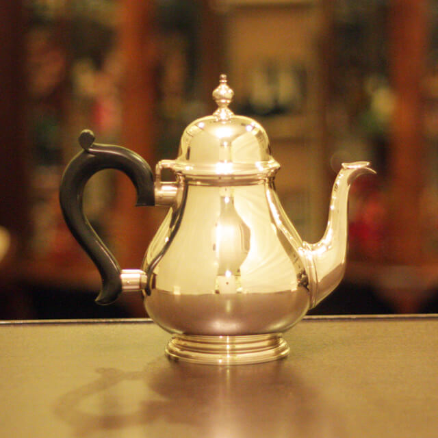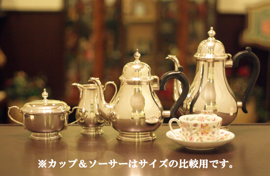 家庭用仕様2人用(ティーカップ4~5杯分)の4点ティーセットです。スターリングシルバーの商品です。