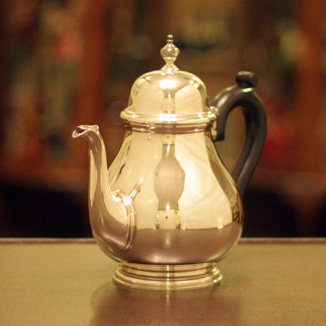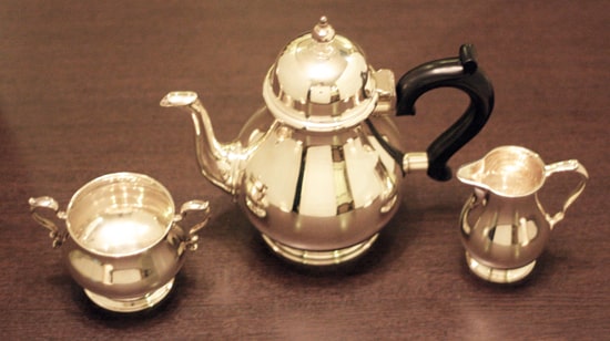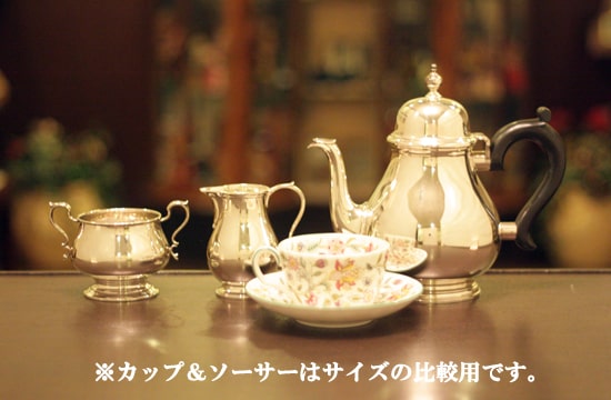 家庭用仕様2人用(ティーカップ4~5杯分)の3点ティーセットです。スターリングシルバーの商品です。