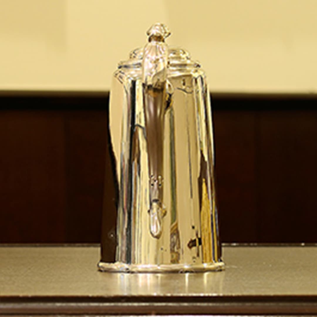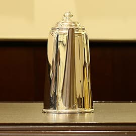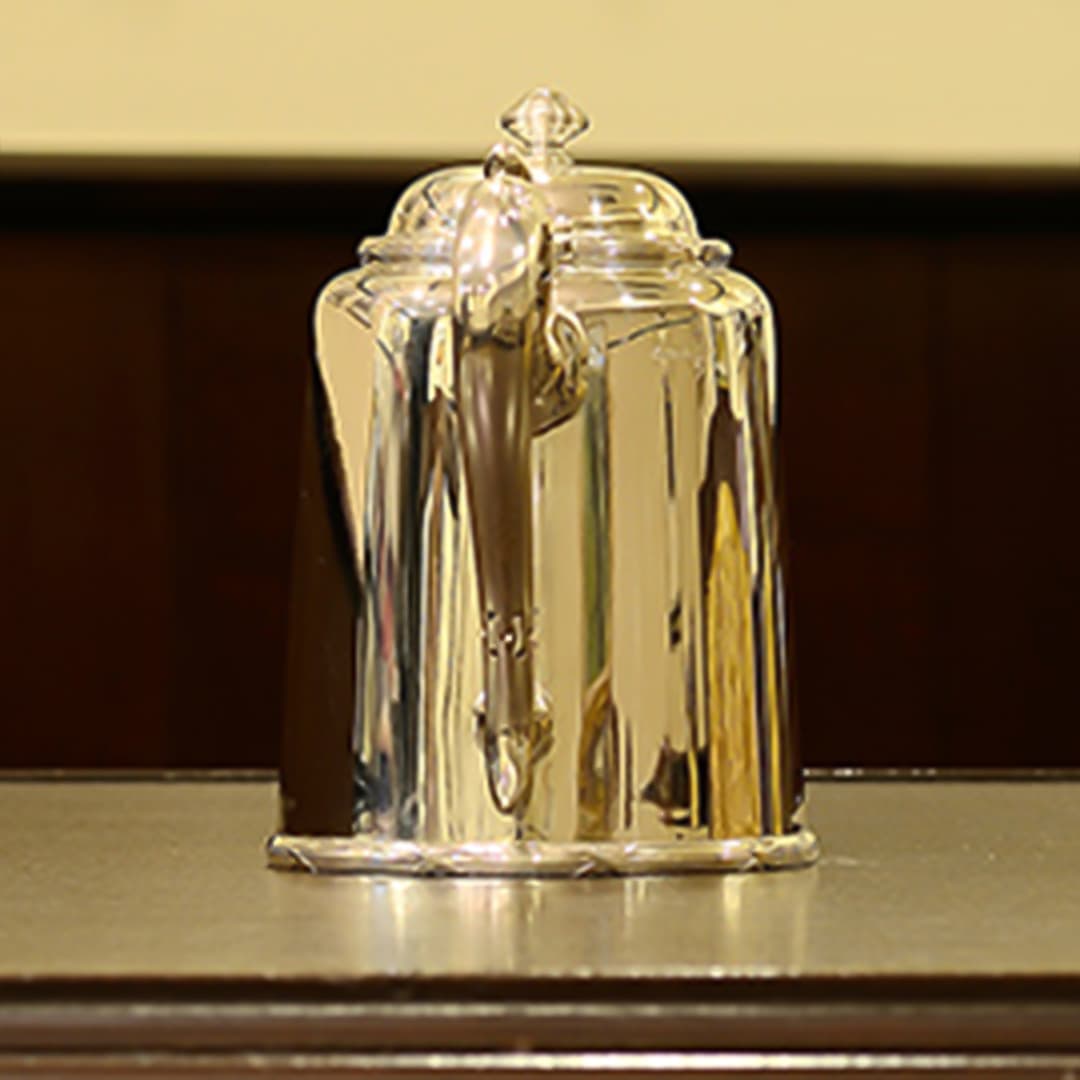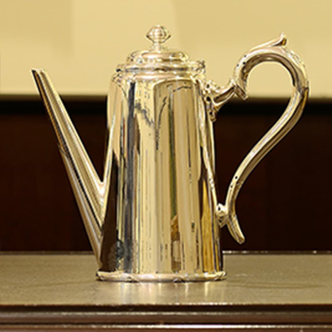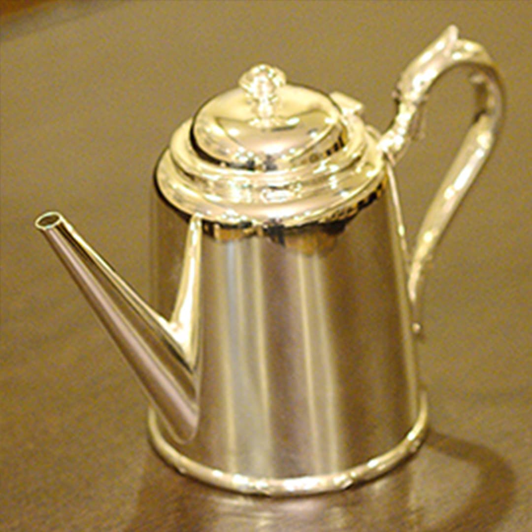 Walker & Hall(ウォーカー&ホール)製のティーセットです。1900~1940年代製(推定)。家庭仕様の2人用(ティーカップ5杯分)、4点ティーセットです。日本で改装(再メッキ)されたものです。