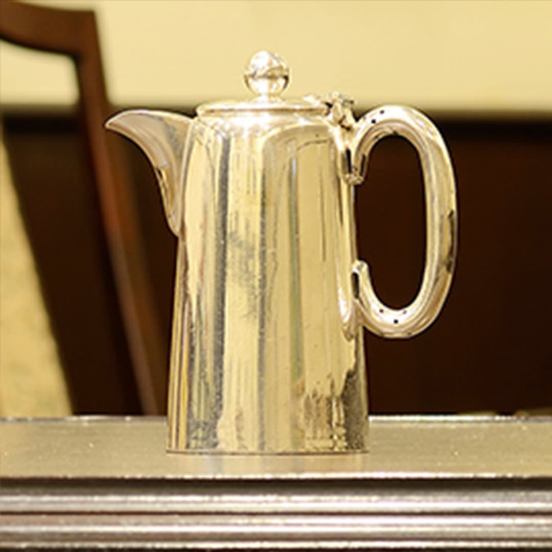 Walker & Hall(ウォーカー&ホール)製のティーセットです。1900~1940年代製(推定)。ホテル仕様のルームサービス1人用(ティーカップ2杯分)、4点ティーセットです。