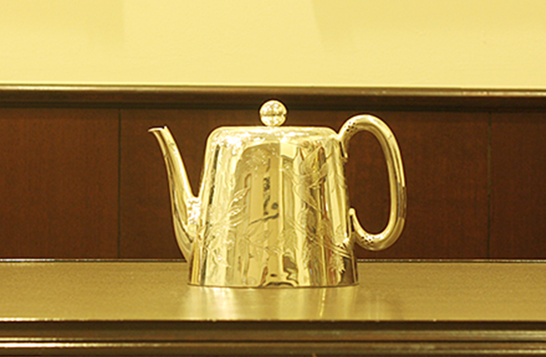Walker & Hall(ウォーカー&ホール)製のティーポットです。1889年製。パリ万国博覧会が開催された1889年(明治22年)