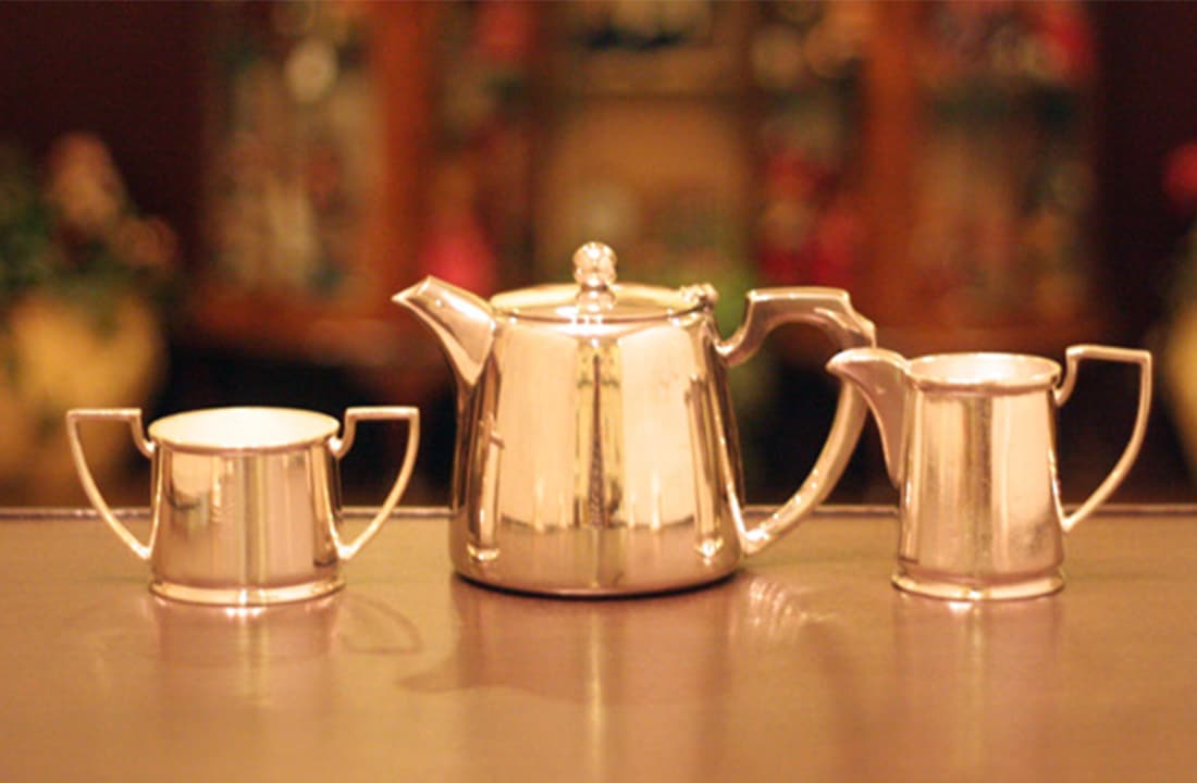 ホテル用2人用(ティーカップ4杯)の3点ティーセットです。