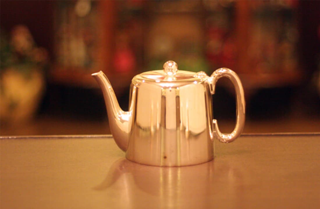 業務用2人用(ティーカップ3~4杯)のティーポットです。日本で改装(再メッキ)されたものです。