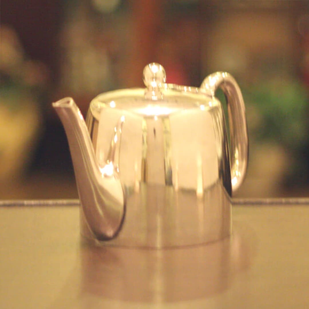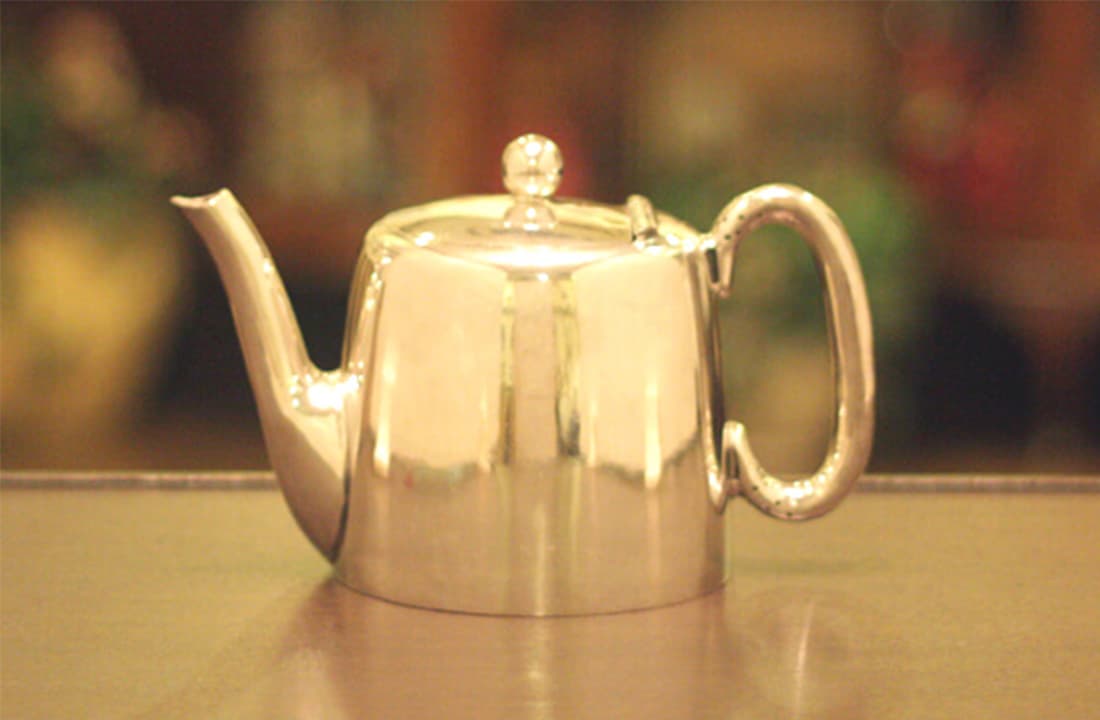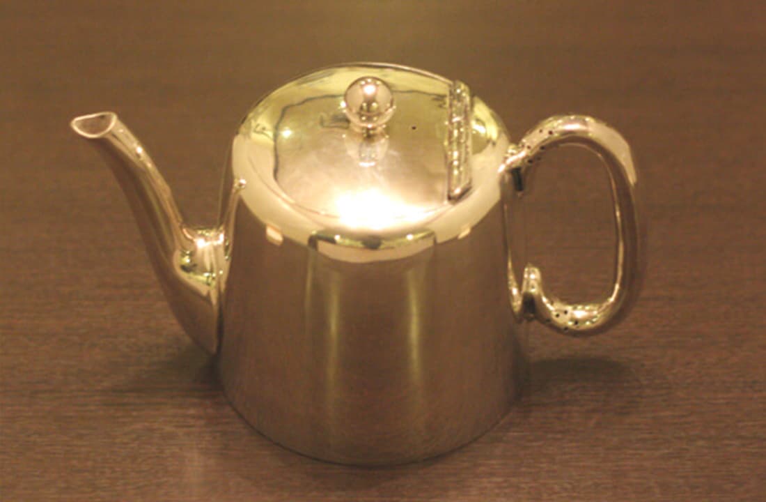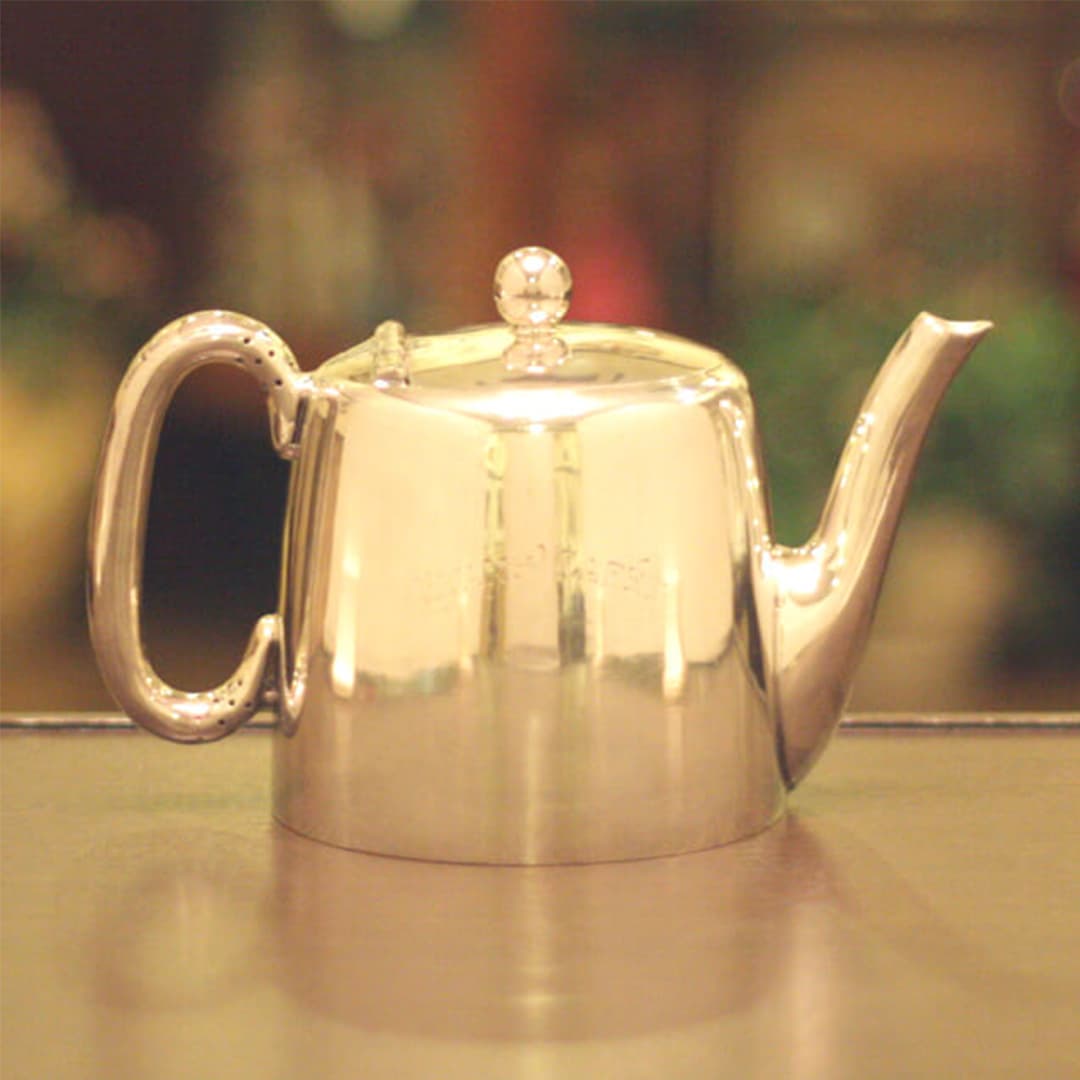 業務用2人用(ティーカップ3~4杯)のティーポットです。イギリスで改装(再メッキ)されたものです。