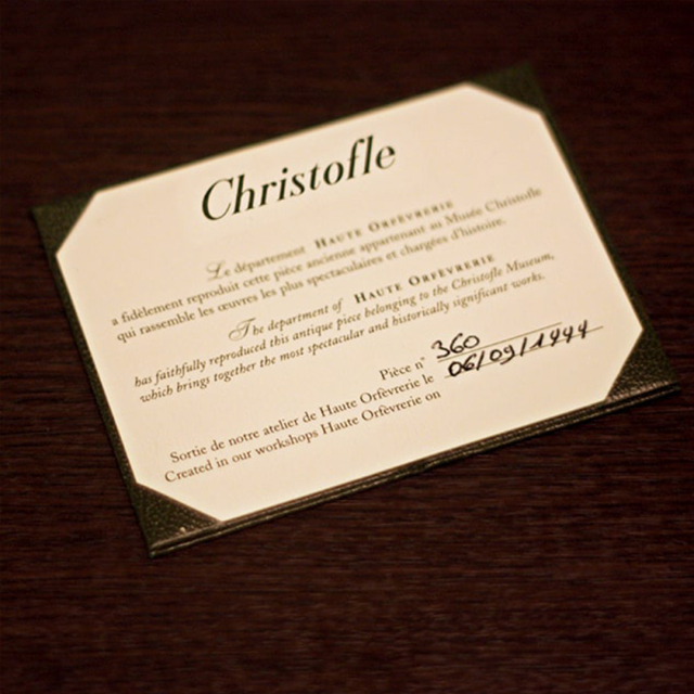 Christofleの保証書付き。