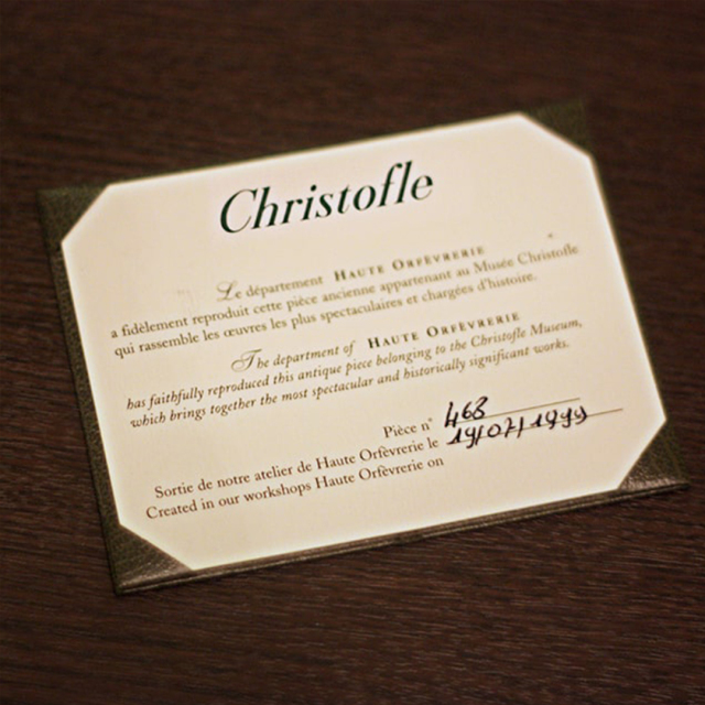 Christofleの保証書付き。