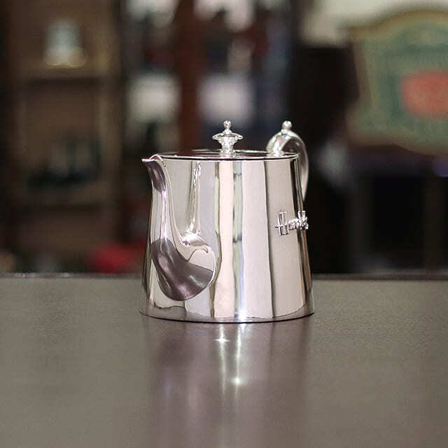 イギリスの蚤の市にて「Harrods(ハロッズ)のエンブレムが側面にあしらわれたティーポットがある。」という紹介があり仕入れた商品です。