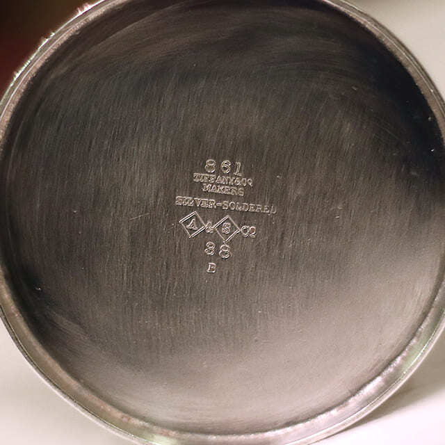 現在市場に出回っているTiffanyのシルバーウェアは、ほとんどの商品の側面にイニシャルが入っており、贈り先のイニシャルが入っていないものは殆ど市場に出ていません。