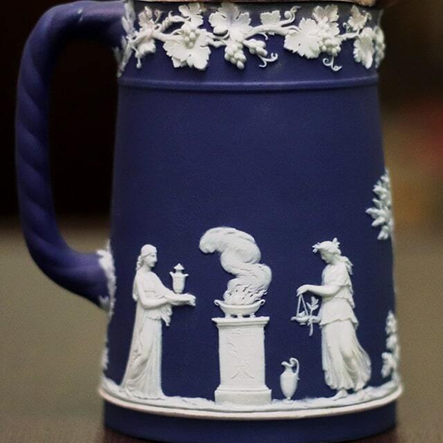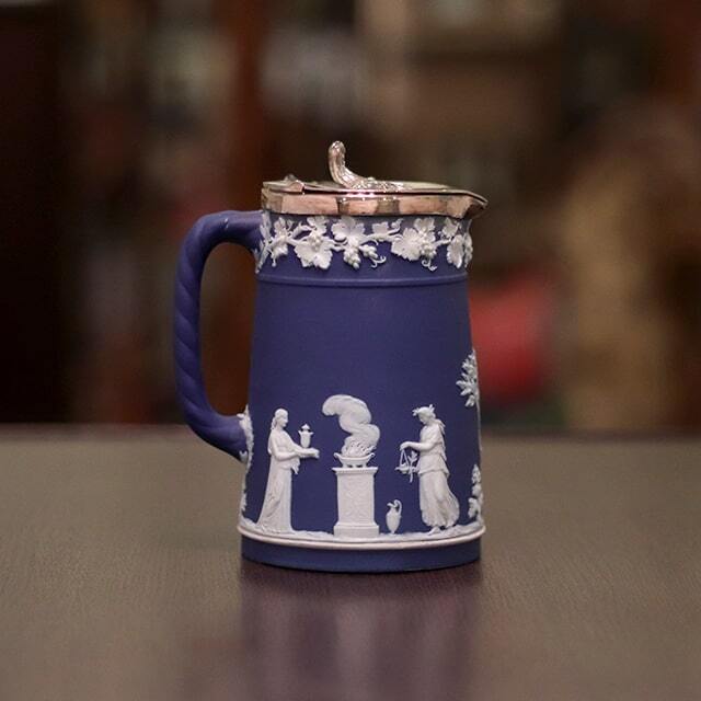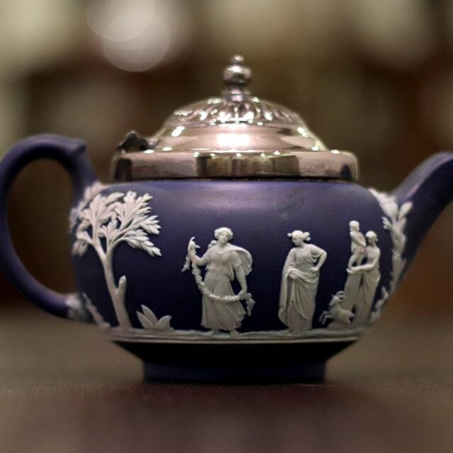 WEDGWOOD(ウェッジウッド)の代名詞ともいえるJasperware(ジャスパーウェア)シリーズの商品で、ポットのボディ部分が陶器製、蓋部分がシルバープレート製です。