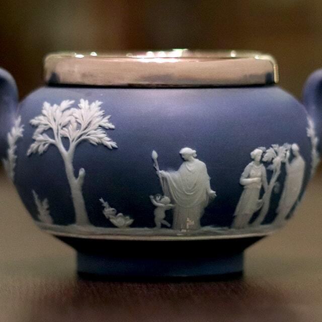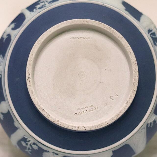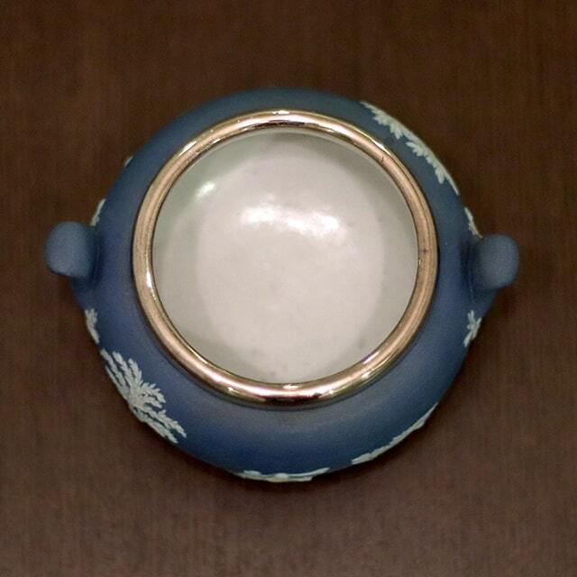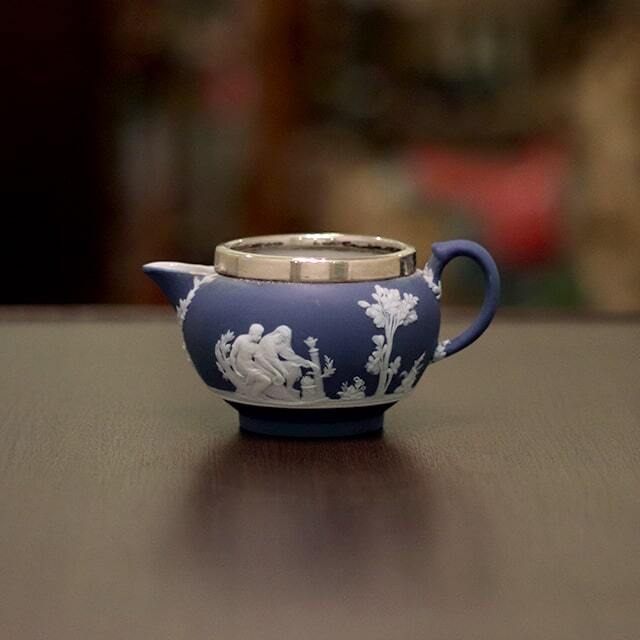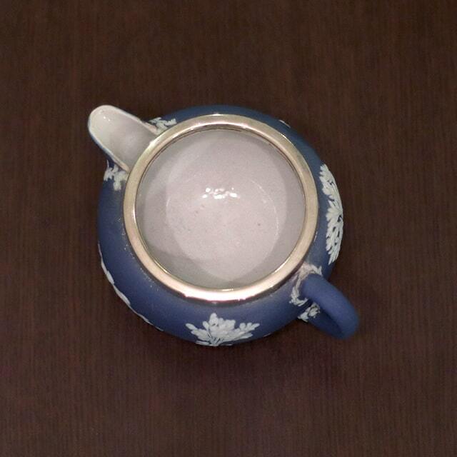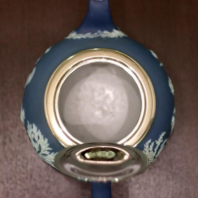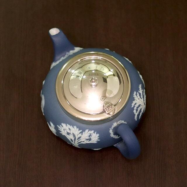 WEDGWOOD(ウェッジウッド)の代名詞ともいえるJasperware(ジャスパーウェア)シリーズの商品で、ポットのボディ部分が陶器製、蓋部分がシルバープレートです。