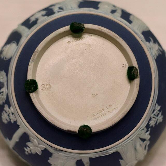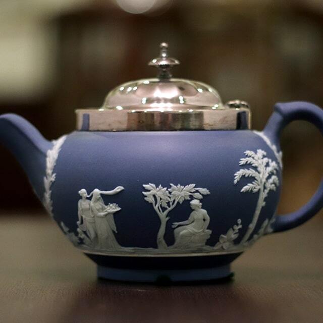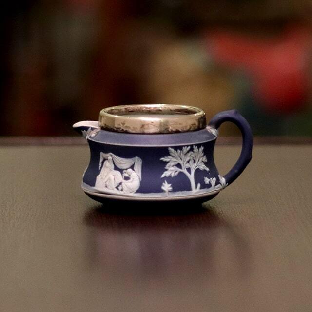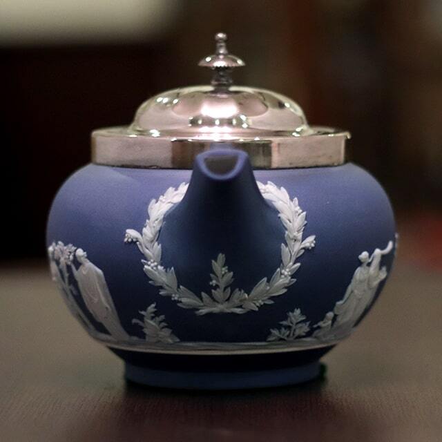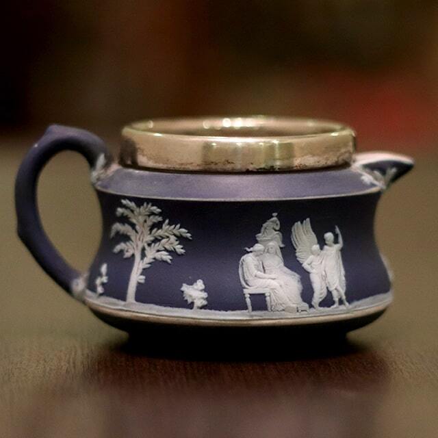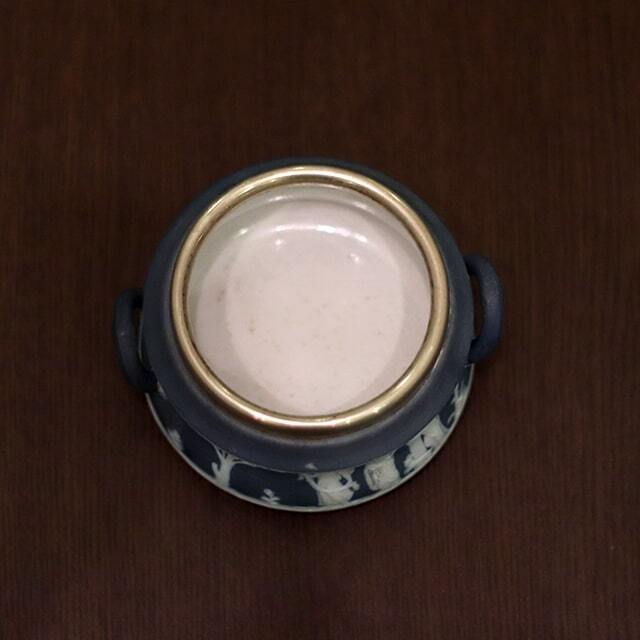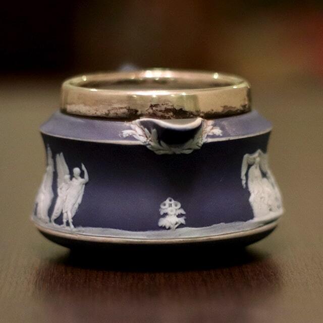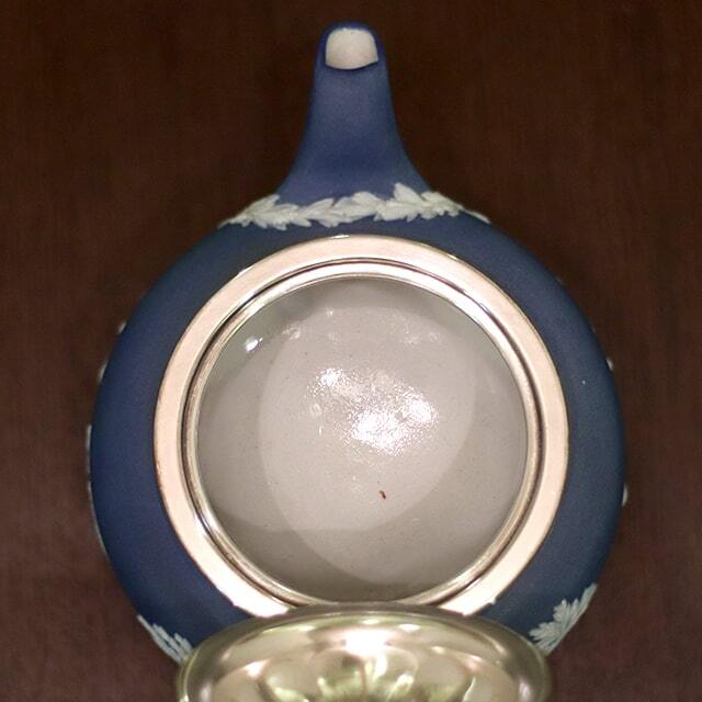 WEDGWOOD(ウェッジウッド)の代名詞ともいえるJasperware(ジャスパーウェア)シリーズの商品で、ポットのボディ部分が陶器製、蓋部分がシルバープレートです。