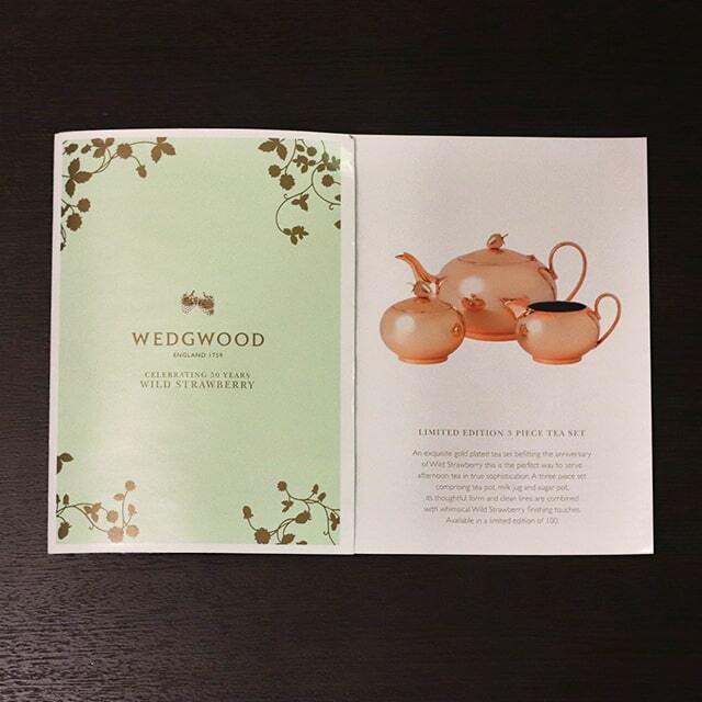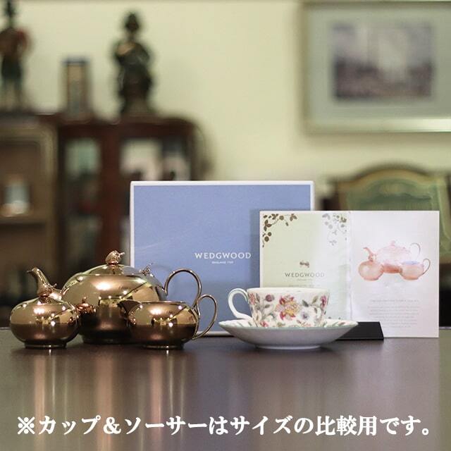 陶磁器メーカーであるウェッジウッドの人気シリーズ「ワイルドストロベリー」誕生50周年を記念して製作された、世界で100セット限定のゴールドプレートティーセットです。