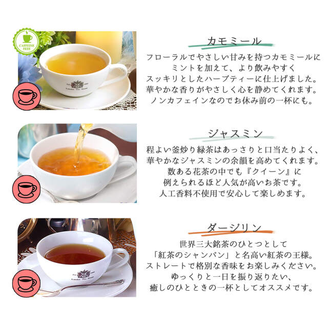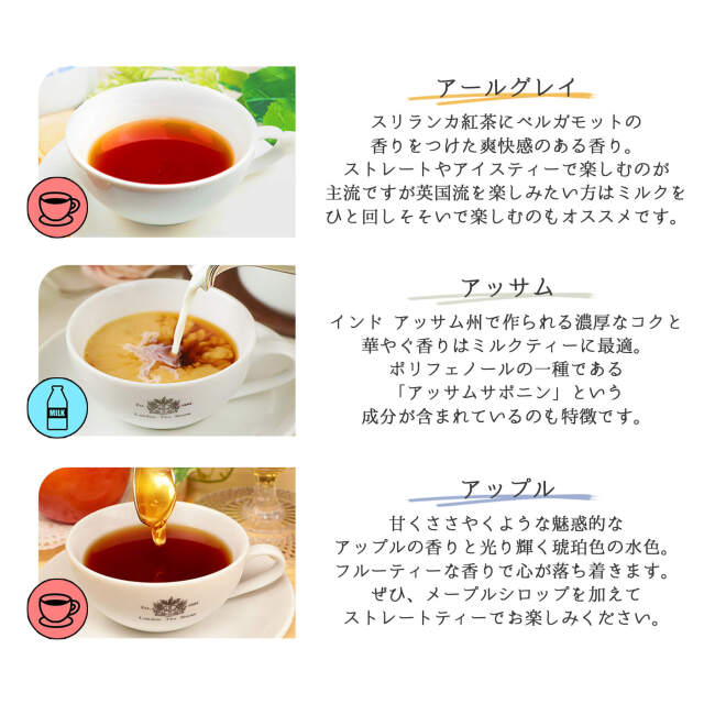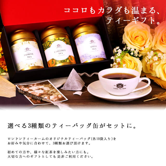 ロンドンティールームのオリジナルティーバッグ(各10袋入り)をお好みや気分に合わせて、3種類お選び頂けます。