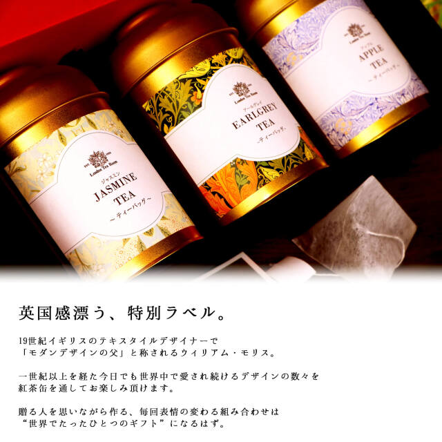 ※本商品のラベルデザインは、ウィリアム・モリスのデザイン(パブリックデザイン)を使用し、ロンドンティールームが作成したものです。