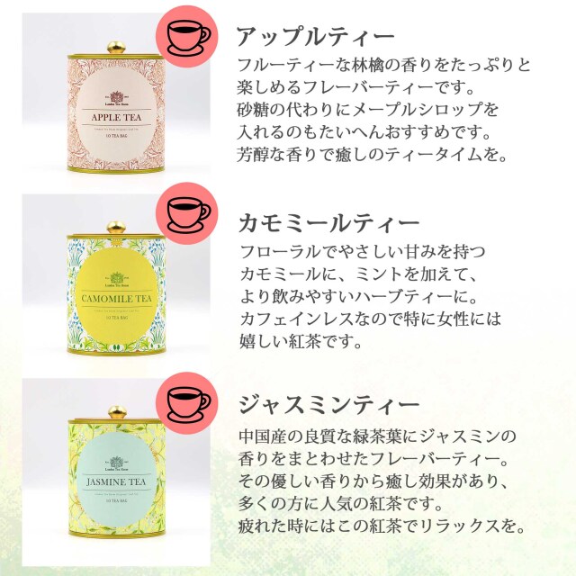 ロンドンティールームのオリジナルティーバッグ(各10袋入り)が、おしゃれなティーキャディー入りになりました!