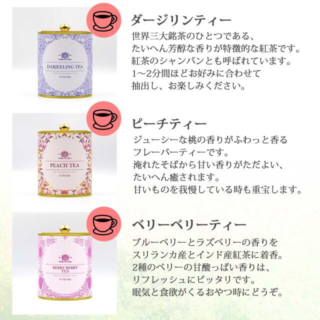 紅茶の種類によって代わるデザインをぜひお手に取ってご覧ください。